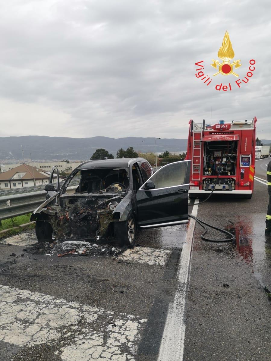 Il veicolo coinvolto, una BMW X3, mentre era in transito, per cause accidentali si incendiava. A bordo vi era la sola conducente che, accortasi tempestivamente dell’anomalia, riusciva ad accostare il mezzo e ad abbandonarlo prima che venisse completamente avvolto dalle fiamme.