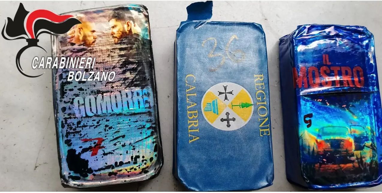 I carabinieri della sezione radiomobile della compagnia di Bolzano hanno scoperto oltre 6,7 chilogrammi di hashish nascosti nella fossa dell’ascensore di uno stabile cittadino. La sostanza era suddivisa in 66 panetti, ciascuno confezionato in involucri con scritte riconducibili alla cultura popolare e alla criminalità organizzata, come “Il Mostro”, “Gomorra” e “Regione Calabria”.