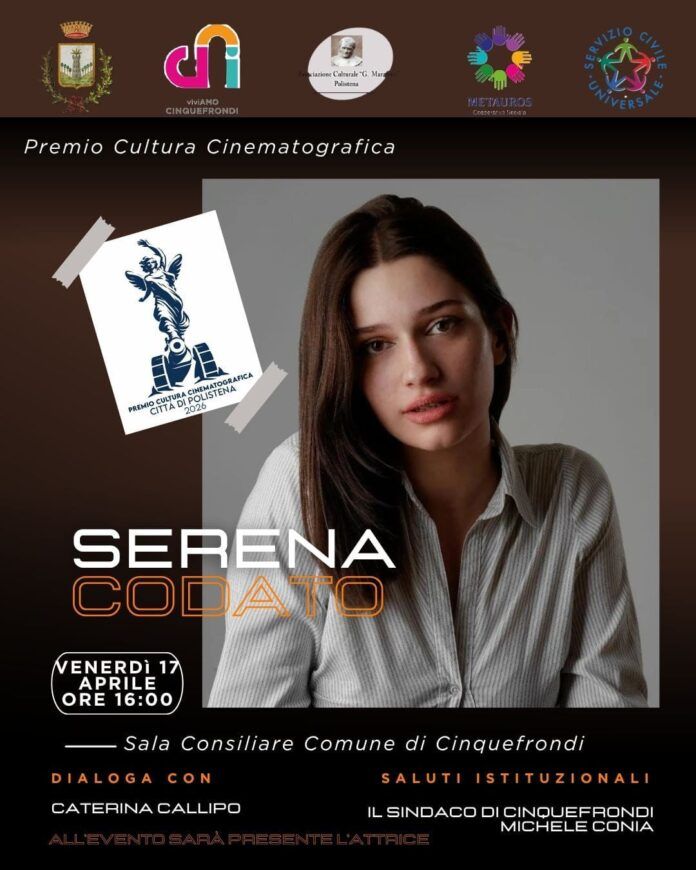 L’evento si terrà venerdì 17 aprile presso la Sala Consiliare del Comune di Cinquefrondi e vedrà la partecipazione dell’attrice Serena Codato, giovane protagonista del panorama televisivo italiano, nota al grande pubblico per il suo ruolo nella fiction Rai “Mare Fuori”.