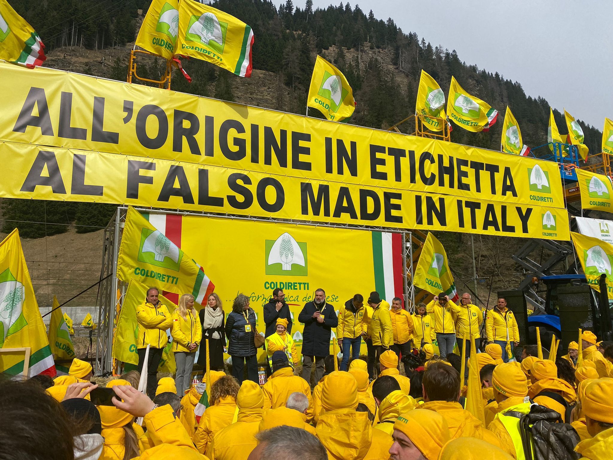 Coldiretti torna al Brennero: mobilitazione a difesa di agricoltori e consumatori per la pace, la trasparenza e la difesa del cibo italiano, per modifica del codice doganale e contro i rincari.