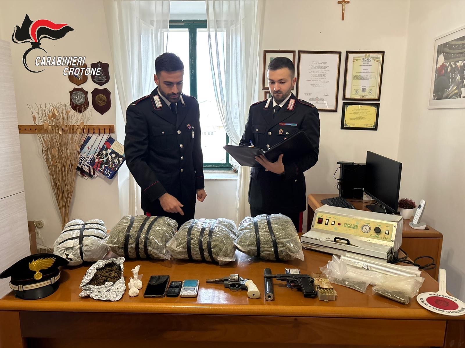 STRONGOLI (KR) – I Carabinieri della Compagnia di Cirò Marina hanno arrestato un uomo di 44 anni, commerciante del posto, sorpreso con un vero e proprio deposito di droga e armi nascosto in un magazzino adiacente alla sua abitazione. L’operazione rientra nei servizi di controllo del territorio disposti dal Comando Provinciale di Crotone, finalizzati anche alla repressione dei reati legati agli stupefacenti.