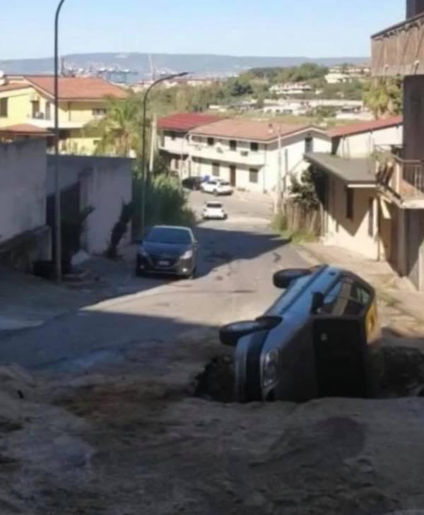 Ciò che è accaduto oggi invece purtroppo corrisponde a realtà. Una Citroen Saxo è caduta dentro una voragine apertasi in via Monti, a Gioia Tauro.