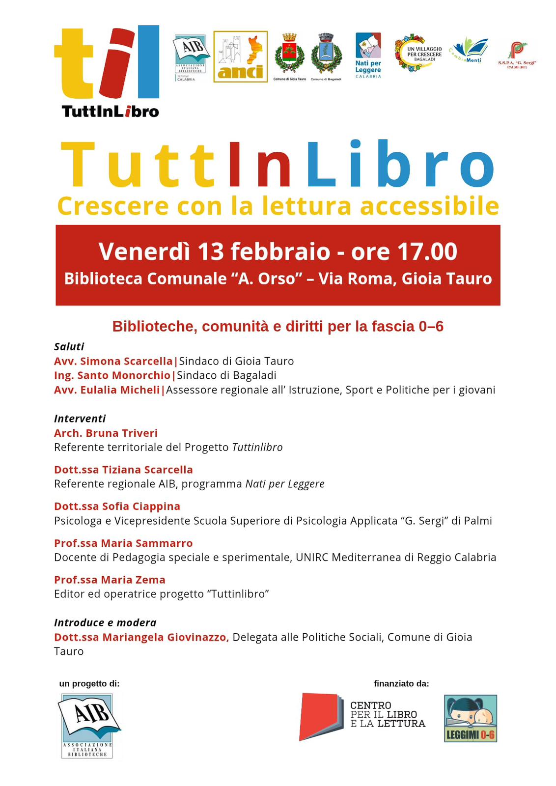 Durante l’incontro si alterneranno interventi di esperti tra cui Bruna Triveri, Tiziana Scarcella, Sofia Ciappina, Maria Sammarro e Maria Zema, che approfondiranno il valore della lettura precoce come strumento di equità educativa e di partecipazione sociale per bambini e famiglie.