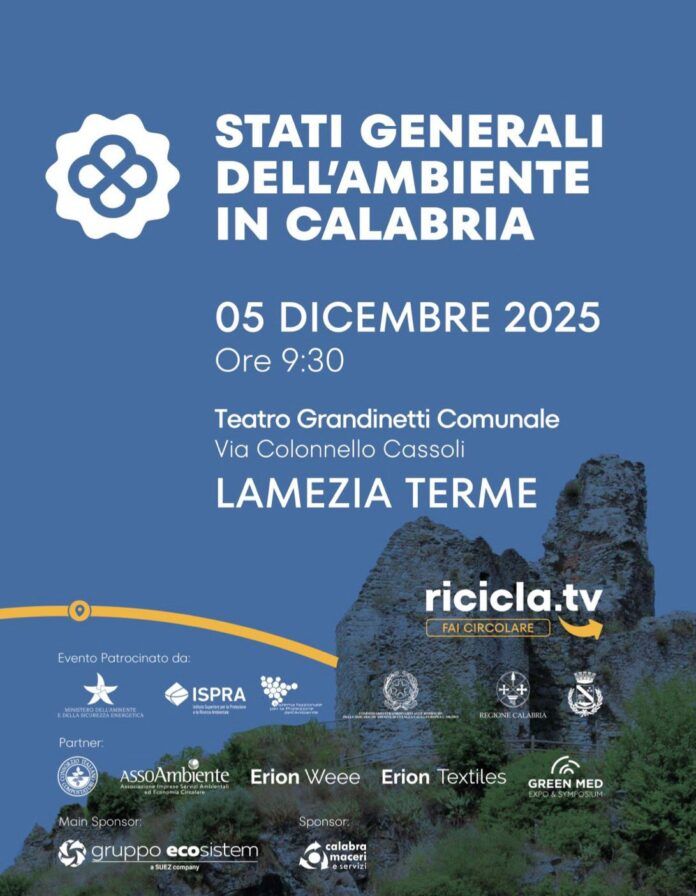 LAMEZIA TERME – Il 5 dicembre 2025 il Teatro Grandinetti Comunale di Lamezia Terme, in via Colonnello Cassoli, ospiterà gli Stati Generali dell’Ambiente in Calabria, una giornata di confronto promossa da Ricicla Tv con il patrocinio del ministero dell’Ambiente e della Sicurezza Energetica, di ISPRA, del Sistema Nazionale per la Protezione dell’Ambiente e con il supporto della Regione Calabria. L’appuntamento riunirà istituzioni, consorzi della filiera del riciclo e operatori dell’economia circolare con l’obiettivo di analizzare lo stato delle politiche ambientali regionali e le opportunità offerte dal Pnrr.