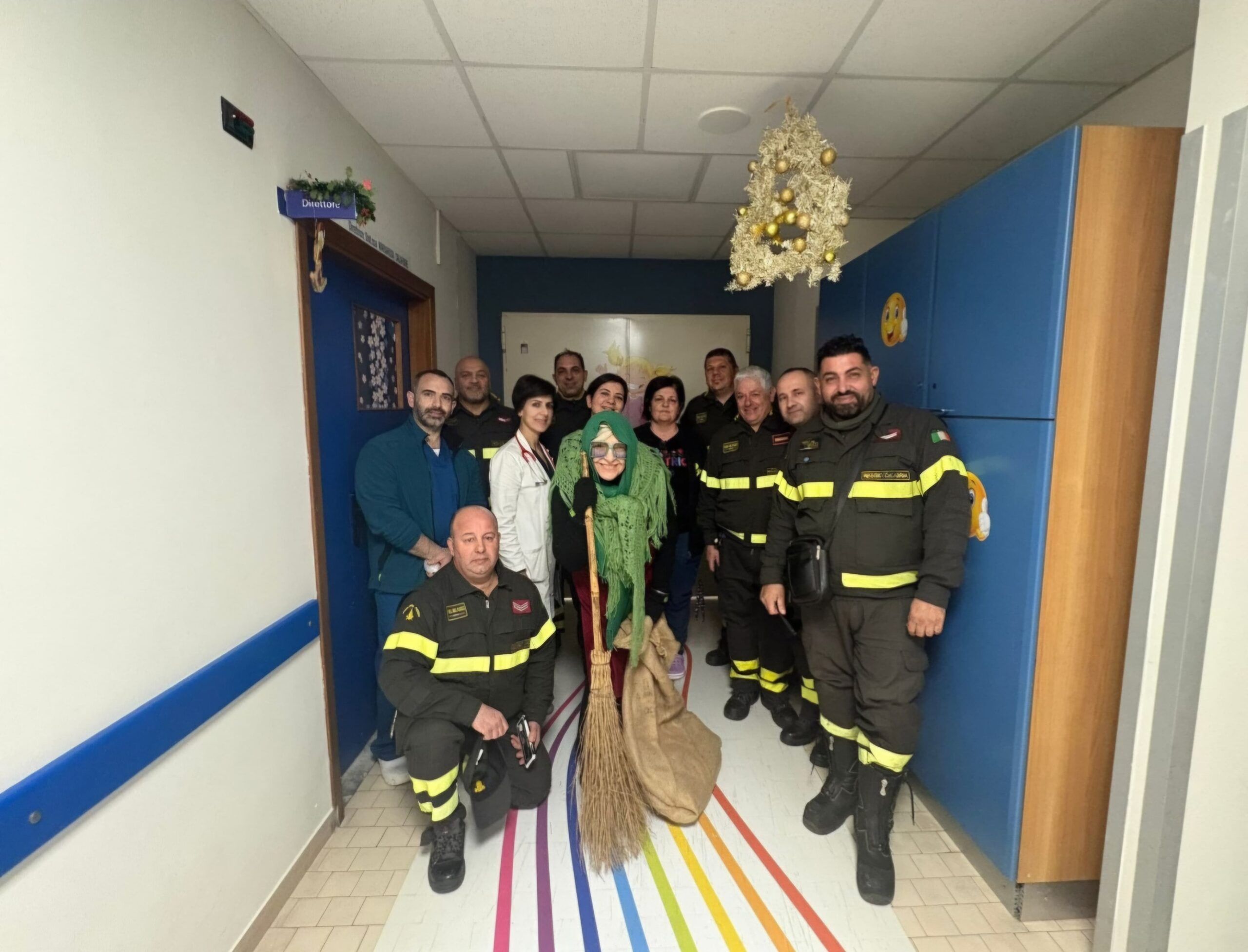 L’iniziativa, accolta con grande entusiasmo, ha visto i vigili del fuoco portare doni e calze della Befana, distribuite direttamente ai bambini ricoverati. A rendere il momento ancora più magico è stata la presenza della Befana in persona, che ha animato la mattinata tra risate, stupore e tanta allegria.
