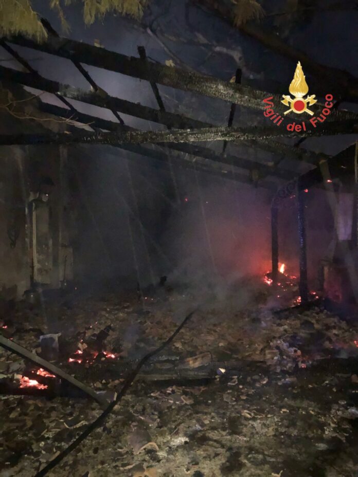 Presenti sul luogo dell’incendio anche i Carabinieri, impegnati negli adempimenti di competenza e negli accertamenti del caso. Non si segnalano feriti.