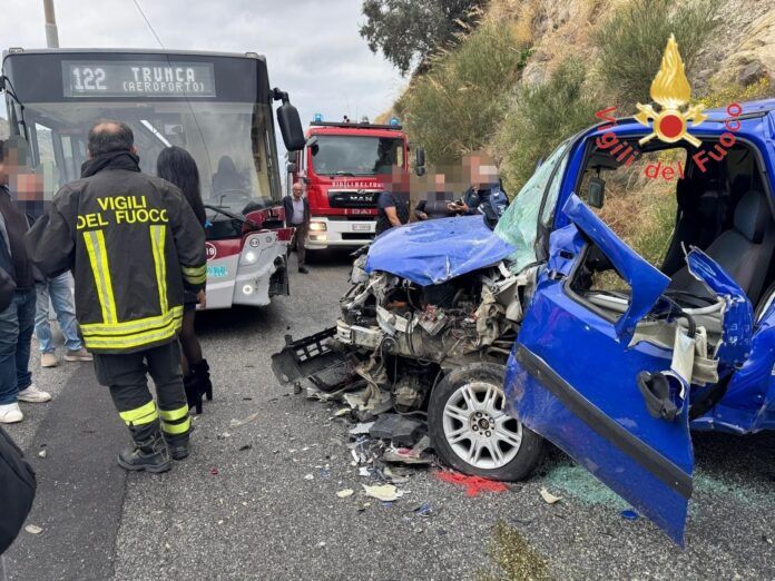 Incidente a Reggio Calabria, scontro tra autobus e Fiat Doblò: un ferito grave