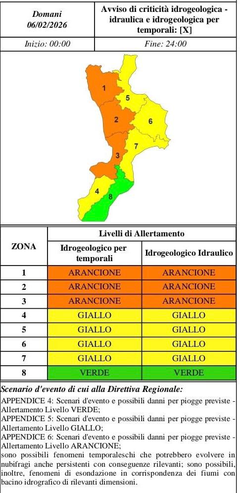 Il maltempo continua a insistere sulla Calabria, con condizioni atmosferiche in ulteriore peggioramento nelle prossime ore. La Protezione Civile regionale, in collaborazione con il Centro Funzionale Multirischi Arpacal, ha emesso un’allerta meteo arancione per la giornata di domani su ampie porzioni del territorio.