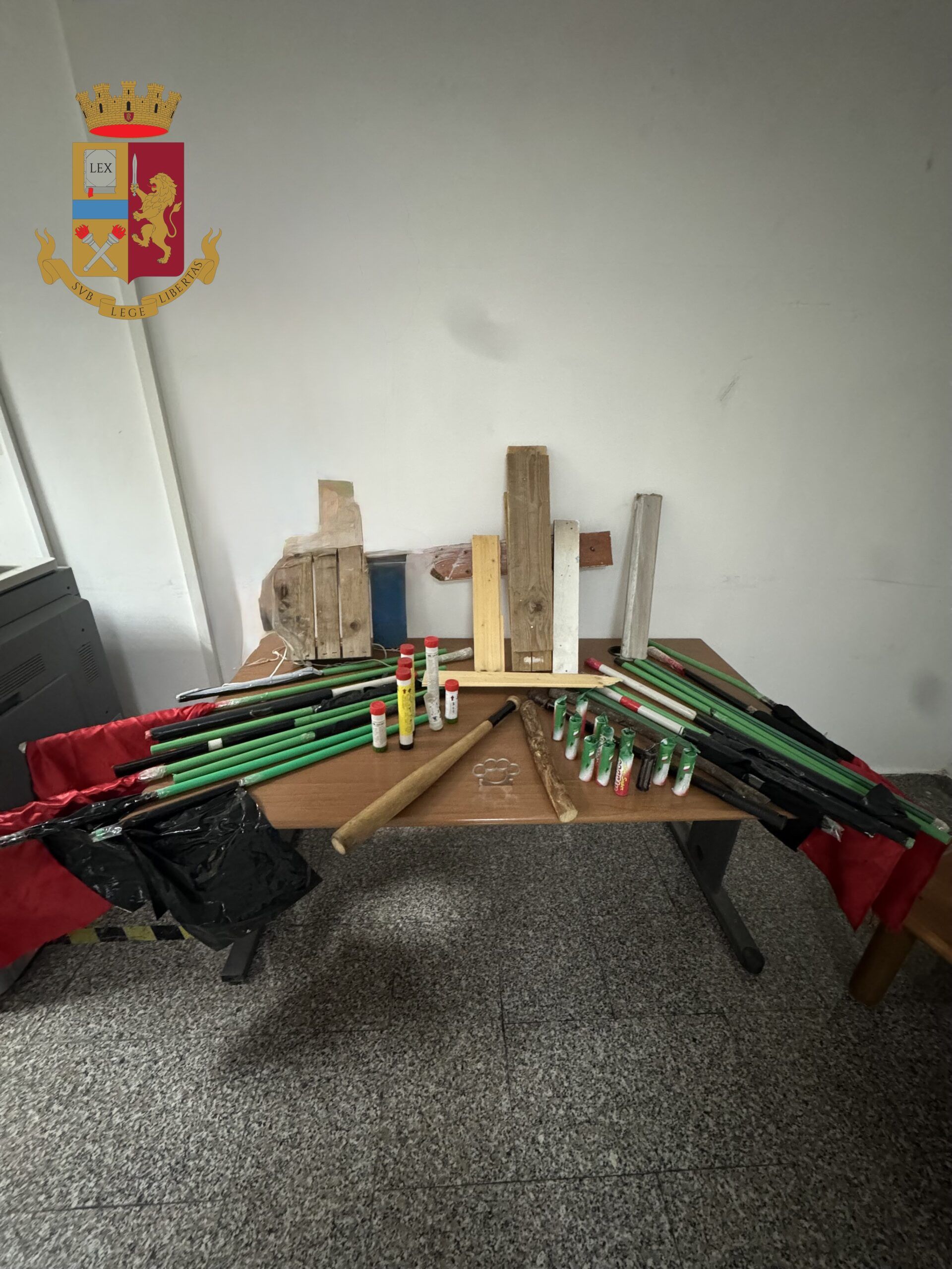 In occasione dell’incontro di calcio valevole per la Coppa Italia di Serie D tra A.S. Reggina 1914 e A.S.D. Nocerina Calcio 1910, disputatosi lo scorso 22 ottobre presso lo Stadio Comunale “Oreste Granillo” di Reggio Calabria, la Polizia di Stato ha sottoposto a sequestro, a carico di ignoti, numerosi ordigni esplosivi artigianali, fumogeni, un tirapugni in metallo e diversi oggetti contundenti, tra cui due bastoni in plastica con anima in ferro, rinvenuti all’interno dell’area di sosta riservata ai sostenitori della squadra ospite ed ivi abilmente occultati.