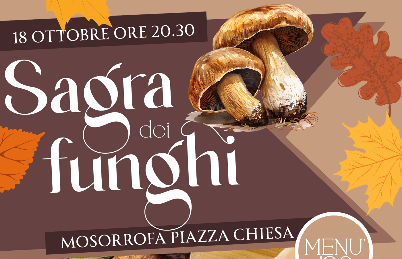 Alle 20.30, i profumi cambieranno scena per lasciare spazio alla gastronomia con il ritorno della Sagra dei Funghi, uno degli appuntamenti più amati del paese. Dopo anni di assenza, la sagra offrirà ai visitatori l’occasione di riscoprire i sapori tipici del territorio attraverso un menù ispirato alla tradizione. Sarà allestita una mostra micologica curata da esperti del settore, che illustreranno le caratteristiche delle diverse specie di funghi e i rischi legati al consumo di quelle non commestibili.