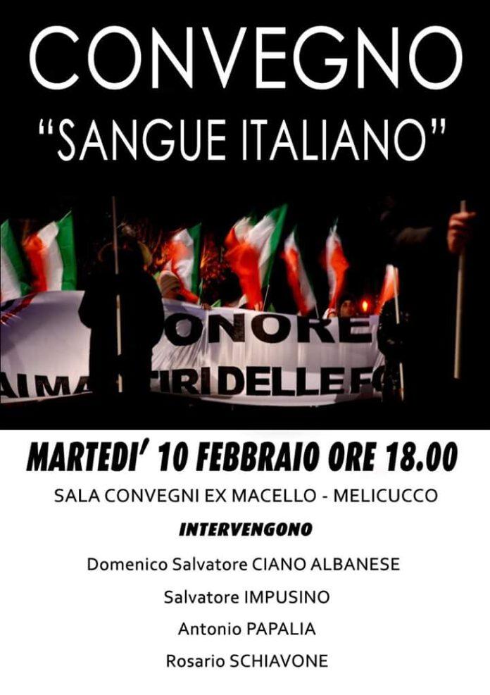 Melicucco commemora le vittime delle Foibe. Martedì 10 febbraio, alle 18 presso la Sala convegni Ex Macello, l’appuntamento è con “Sangue italiano”, una commemorazione in occasione della giornata del ricordo. L’evento è stato organizzato dal consigliere comunale di Melicucco Salvatore Impusino e da Domenico Salvatore Ciano Albanese, già presidente di Azione Giovani e commissario di Alleanza Nazionale. Al convegno in ricordo dei massacri delle Foibe prenderanno parte anche il consigliere comunale del Nuovo Centro Destra di Palmi Antonio Papalia, e Rosario Schiavone, già vicesindaco di Gioia Tauro. L’eccidio, spesso dimenticato, fu causato dalla violenza che esplose subito dopo la fine della Seconda guerra mondiale, soprattutto dalla primavera del 1945, e perpetrata in Istria e in Dalmazia da parte dei partigiani slavi contro fascisti ed italiani non comunisti, considerati “nemici del popolo”. Il convegno “Sangue italiano” ricorda così i martiri delle Foibe, circa un migliaio tra cattolici, socialisti, liberaldemocratici, donne, anziani, bambini.