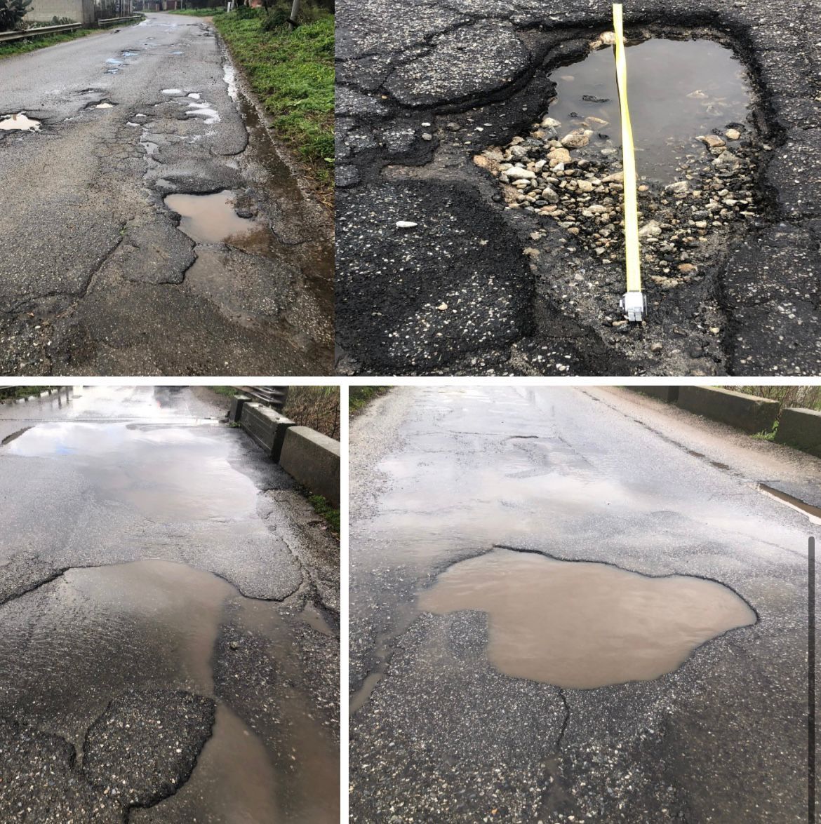 Pertanto, alla luce delle superiori segnalazioni e del report fotografico allegato, si richiede con urgenza un intervento finalizzato al ripristino delle condizioni di sicurezza della careggiata“.