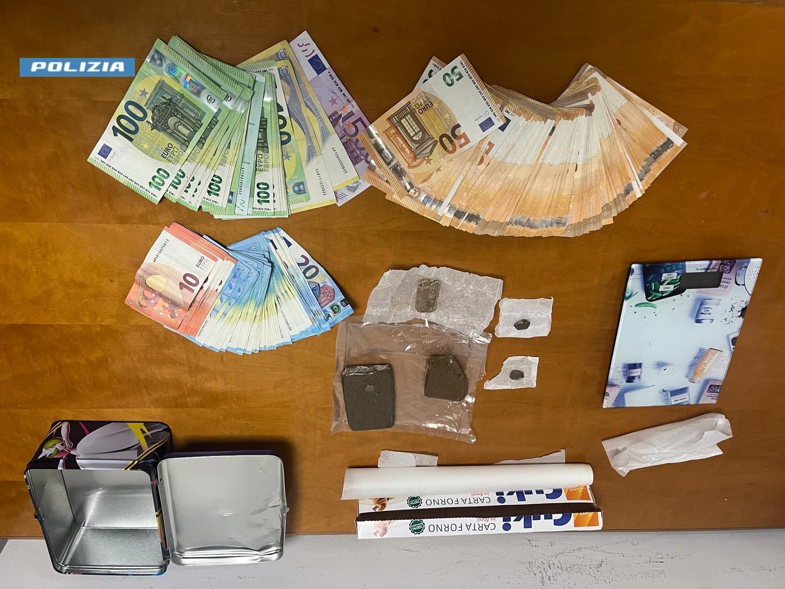 Nel corso dei controlli sono stati sequestrati circa 250 grammi di hashish e 10 grammi di marijuana, oltre a 12.600 euro in contanti.